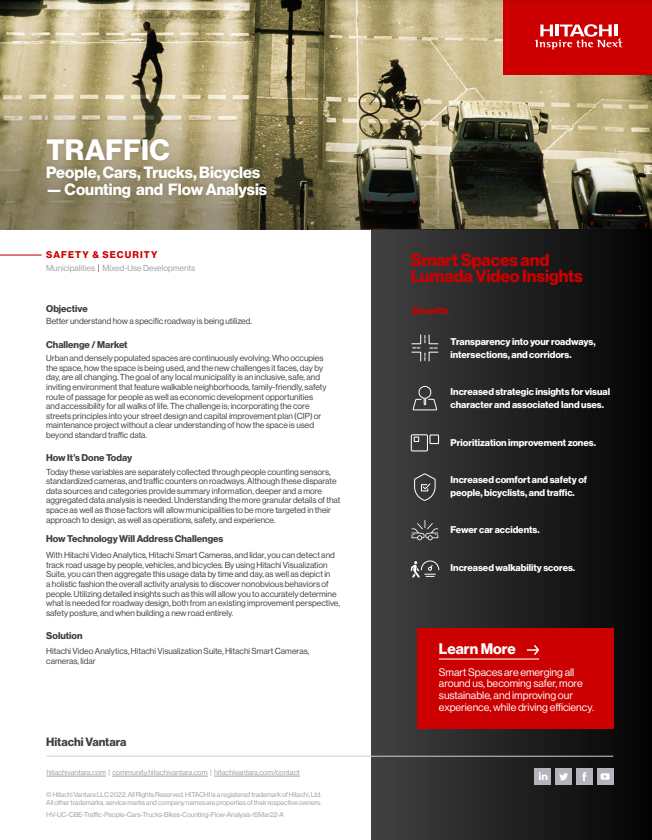 Enables traffic managers to identify traffic volume, transportation trends, and motion patterns, to improve transportation planning and make faster, more informed decisions to improve traffic flow, safety, and experience. In addition, providing a single-screen view to monitor and proactively respond to issues in real-time.